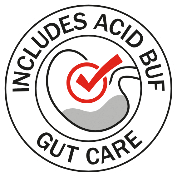 Includes Acid Buf to provide buffering and support a healthy digestive environment in the stomach and hindgut
